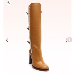 A glamorous boot elevated by our signature accents, the Lolita is a knee-high boot crafted from leather with a stacked heel.