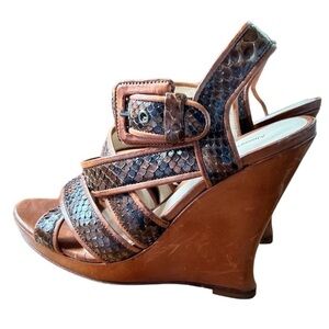 Alexandre Birman Snakeskin Leather Wedges Heels Sandals Women's Size 8.5