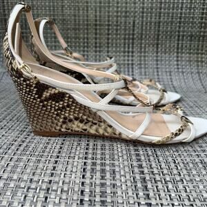 Alexandre Birman White Snakeskin Strappy Wedge Sandals Size 39 1/2 - US 9.5