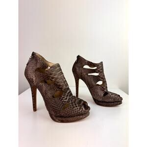 Alexandre Birman Women Pumps 9 Brown Python Skin Peep Toe Back Zip Stiletto Heel