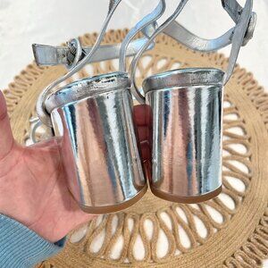 These are gently used Alexandre Birman Women's Clarita Flare Block Heel Sandals Silver Size 40. In very good condition. Shoes have some minor flaws throughout- mostly on heels and near top of heels on shoes. Minor wear on front tip. See all pics for condition.