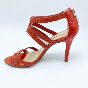 Alexandre Birman size 6.5 Coral Snakeskin & Braided Leather Stiletto Sandals