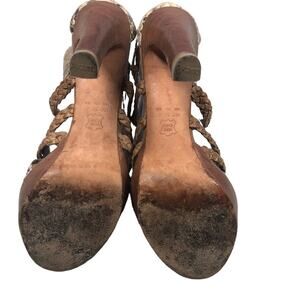 Step out in style with these stunning Alexandre Birman heels! Featuring a chic braided snakeskin print in beautiful shades of tans and browns, these heels are sure to turn heads.