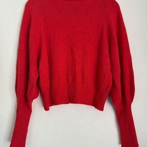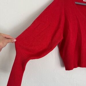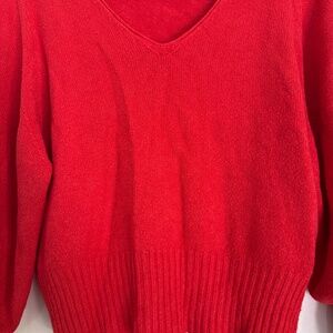 Alexandre Laurent Bright Red Puff Sleeve Sweater | Deep V-Neck | S/M