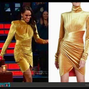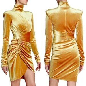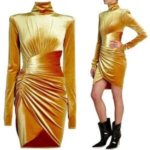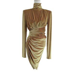 Alexandre Vauthier Gold Velvet Ruched Turtleneck Dress with Tulip Hem
