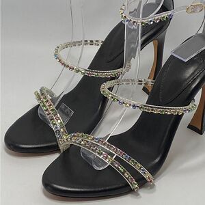 Alexandre Birman Dolores 100 Black & Sparkling Straps Sandal size 36.5