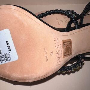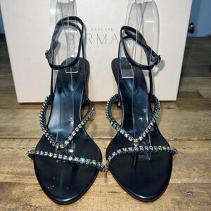 These leather high-heel sandals are adorned with multicolored crystal-embellished straps.
