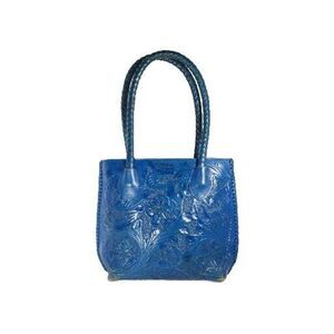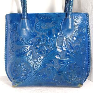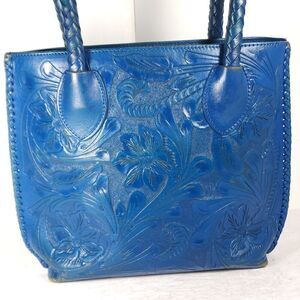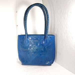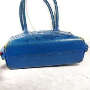 Alexandro Yeo Xl Blue Genuine Leather Tooled Floral Shoulder Bag Purse .