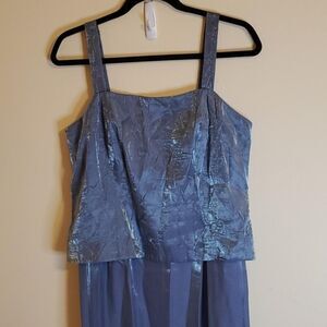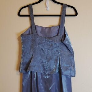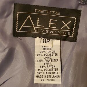 Alex Evenings Petites Silver Gray sleeveless maxi gown, invisible back zipper, size 8P. A bit of an iridescence to the fabric, very nice! Excellent pre loved condition, measurements in pics, smoke free home, ships next day. Bundle and Save!