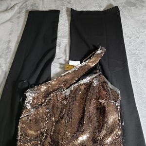 A classy shiny jumpsuit for an evening out or formal get-together. The one shoulder cutout is so unique and stylish!