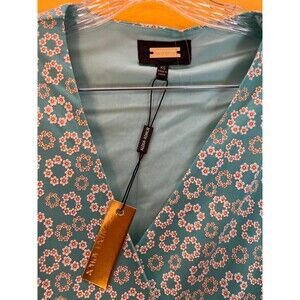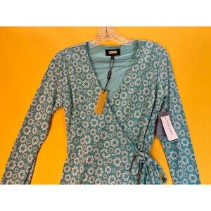 Alexa Admor Amelia Wrap Dress Womens XS Turquoise Daisy Long Sleeve V-Neck NWT