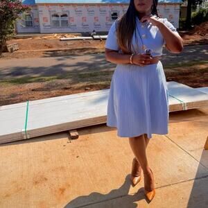 Alexia Admor Blue Polo Pleated Dress XL Pastel Preppy Knit Career Designer $245