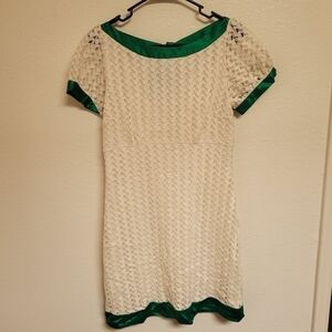 Alexia Admor Cream Lace Dress with Green Satun Trim