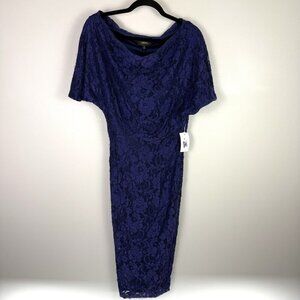 Alexia Admor Dress Womens Small Blue Lace Off Shoulder Cocktail Midi Sheath Party