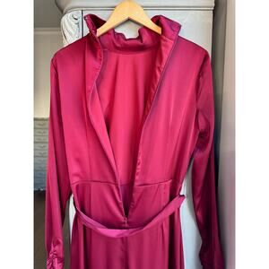 Alexia Admor Dress Sz 8 Red Satin Maxi Faux Wrap Belted High Neck Long Sleeve