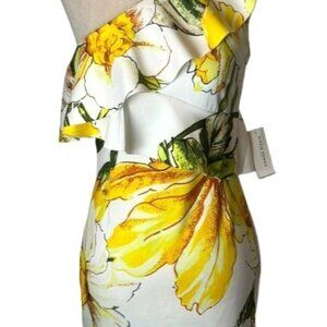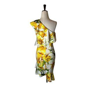 Alexia Admor Yellow And White Floral Print Tropical One Shoulder Ruffle Sheath Mini Dress Women Size 2