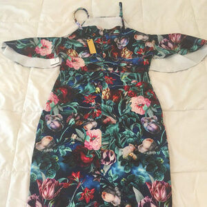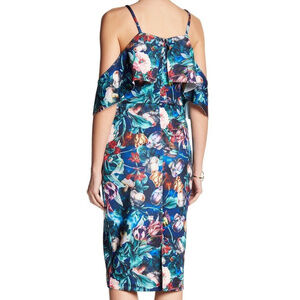 Alexia Admor Floral Cold-Shoulder Midi Cocktail Dress Ruffle Sleeve ,Size S,NEW