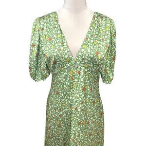 Alexia Admor Floral Midi Dress Lorelei Bubble Sleeve V-Neckline Green W US 6 NWT