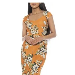 Turn heads in this stunning floral sheath dress, featuring a rich marigold-orange background with delicate white and green blossom prints. The sweetheart neckline and cap sleeves create a feminine silhouette, while the fitted bodice and tailored seams accentuate your curves. Perfect for weddings, garden parties, or any event where you want to make a statement. Lightweight and lined for comfort, this chic dress zips up the back for a sleek finish.