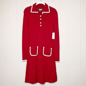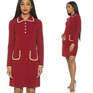 Alexia Admor NWT Bennie Dress XS Burgundy red long sleeve collared preppy knit