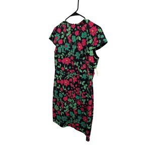Alexia Admor NWT Floral Print Cap-Sleeve Dress Black Green Fuchsia Sz Large