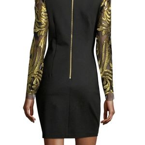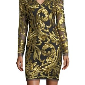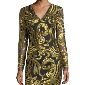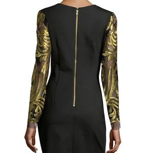 Alexia Admor New DRESS Sequin Embroidered Long Sleeves Sheath Black Mesh Gold S