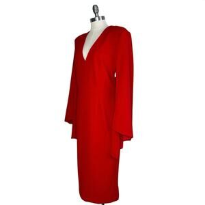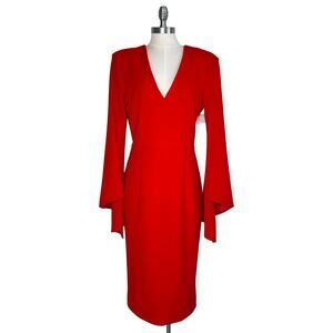 Alexia Admor Ocean Flare Split Sleeve Midi Sheath Dress V-Neck Red