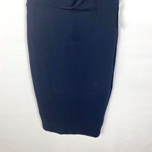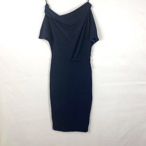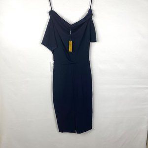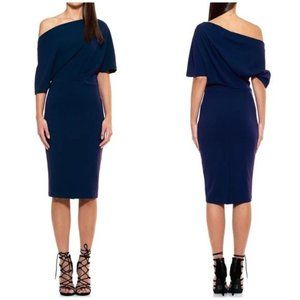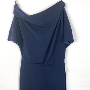 Alexia Admor Olivia Draped One-Shoulder Satin Sheath Midi Dress in Navy Blue, Size XS.