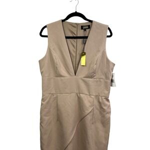 Alexia Admor Sheath Dress Plunge V Neck Sleeveless Lined Cuban Sand Women Size L