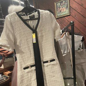 Black and white tweed with bow. Never worn, with tags.