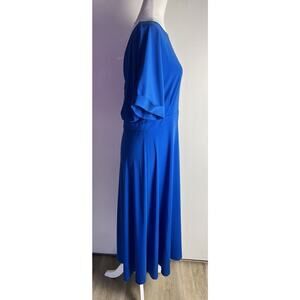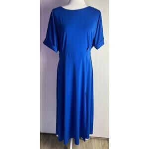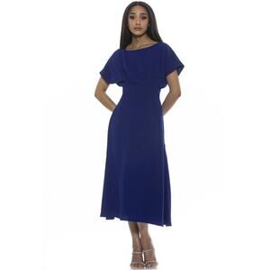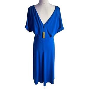 Alexia Admor V-Back Midi Dress Size Large Cerulean Blue Dolman Cuff Sleeves NEW