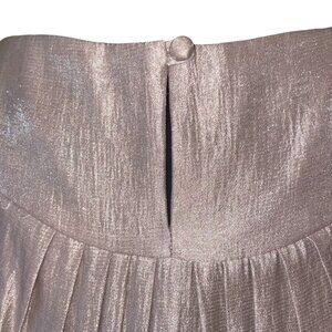 Shimmer and shine in this stunning Alexia Admor shift dress. Crafted from a metallic champagne colored fabric with a subtle crinkle texture, this sleeveless dress features an eye-catching neckline adorned with faceted stones in smoky and champagne tones. The relaxed, flowing silhouette offers both comfort and elegance, perfect for cocktail parties, weddings, or holiday events. Fully lined for a smooth fit with a button closure at the back of the neck.