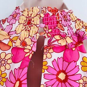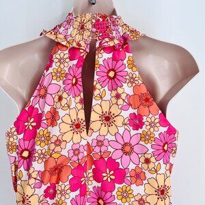 Alexia Admor Wildflowers Halter Dress Size 14 100% Cotton 70s BOHO Ruffle Hem