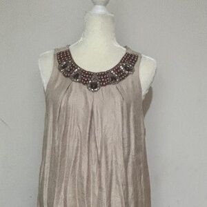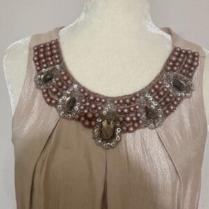 Alexia AdmorWomensize L off white Jeweled Collar Trapeze Dress shimmer finish