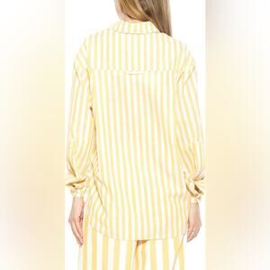 Alexia Admor Yellow Stripe Slouchy Oversized Boyfriend Button-Up Shirt - 2