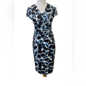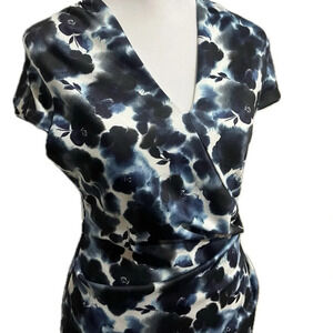 Alexia Admor blue and white floral cap sleeve side ruched dress small