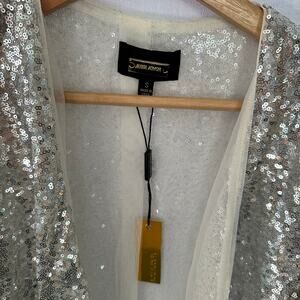 Shine bright in this dazzling Alexia Admore sequin duster. This elegant trench coat features a stunning silver to gold ombre sequin design, perfect for evening events or adding a touch of glamour to any outfit. Size Small- NWT