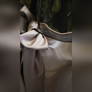 Alexia Designs Forest themed formal strapless gown. Rear bow with snap. Rhinestone belt area.