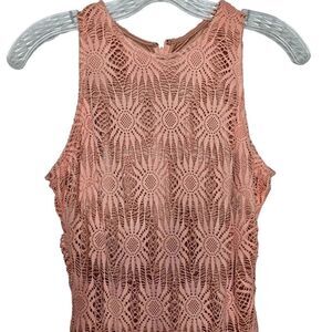 Alexia Admor Lace Overlay Peach Pink Sleeveless Midi Dress Size Small