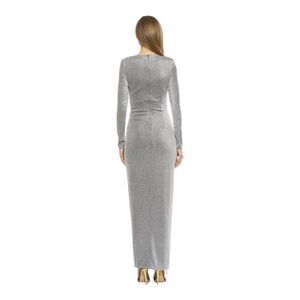 Alexis Admor Cutout Silver Ruched Shimmer Gown Size Small