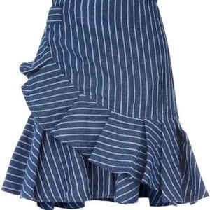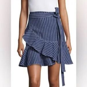Alexis Anvivi Striped Linen Ruffle Wrap Mini Skirt. Denim blue/White. Size M.