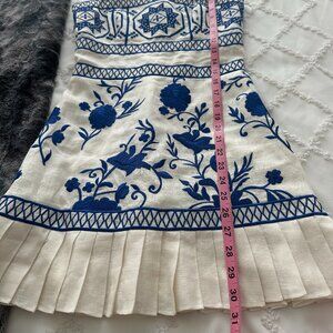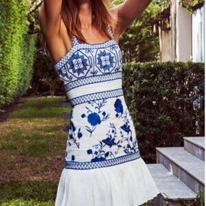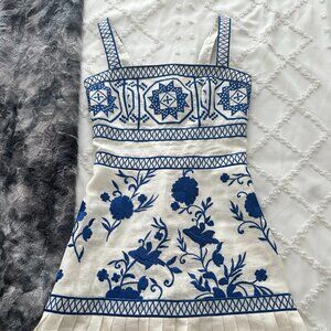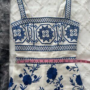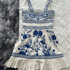 Finished with a micro pleated hem, the label's sleeveless Asteria dress is embroidered with blue roses and quilted motifs for a bold summer favorite.