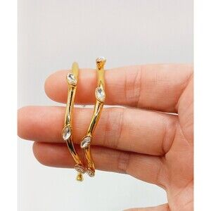Alexis BITTAR Golden Hoops w/ Navette Crystal CZ Signed