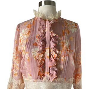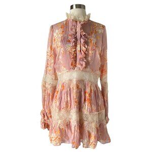 Alexis Beaumont Floral Lace Ruffle Mini Dress Pink Orange Viscose Size S