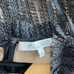 Alexis Becca Dress Sheer Sleeveless Plisse Lace L