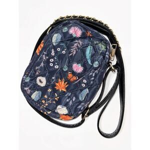 Alexis Bendel Floral/Navy Quilted Crossbody Purse Handbag Gold Detail