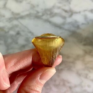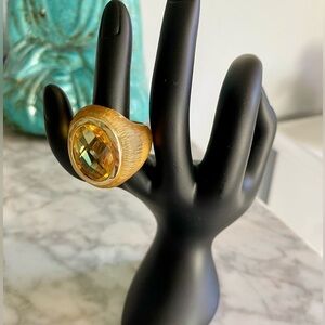 Alexis Bittar Carved Lucite Gold Metallic Yellow Stone Cocktail Ring