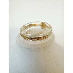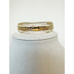 Alexis Bittar Clear Lucite Gold Cuff Bangle Magnetic Bracelet