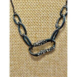 Alexis Bittar Crystal Encrusted Link Gunmetal Liquid Necklace
