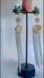 Gold- and silver-tone chandelier earrings with glass ornaments, pavé crystal embellishments, ball chain fringe accents, and clip-on closures.
